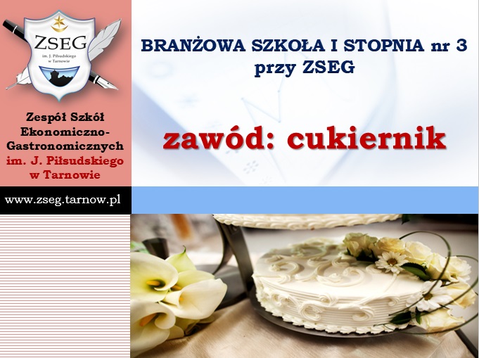 W trakcie kształcenia uczeń zdaje egzamin kwalifikacyjny „Produkcja wyrobów cukierniczych” – egzamin potwierdzający kwalifikację po zakończeniu drugiego semestru klasy trzeciej.