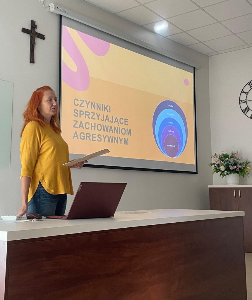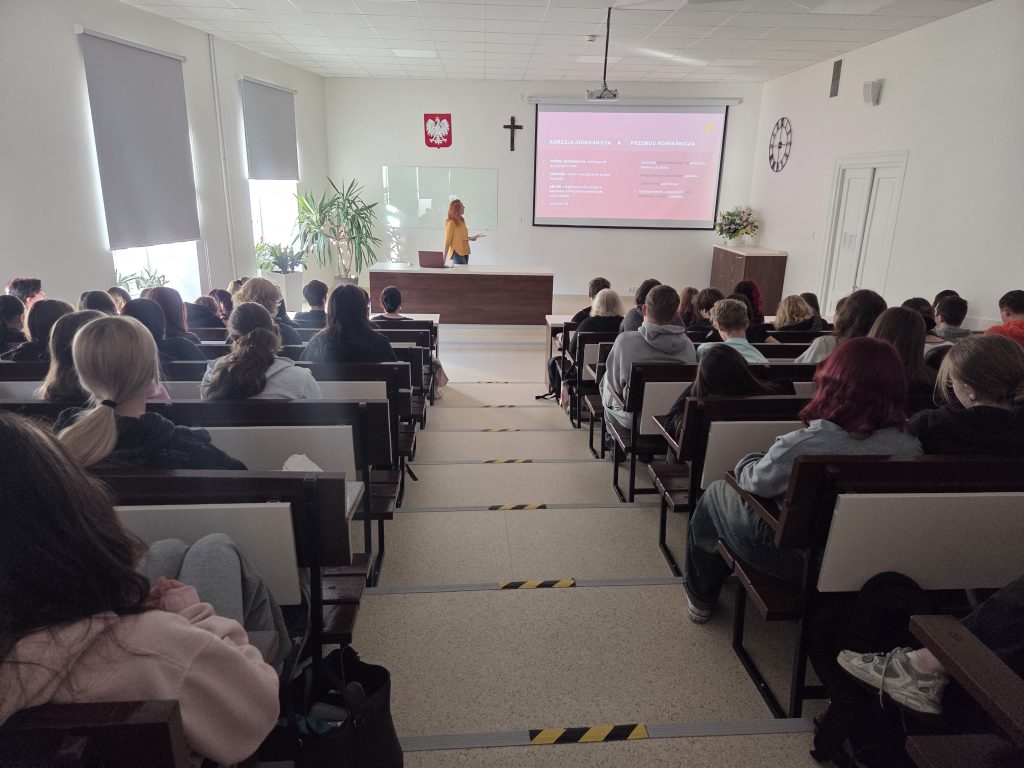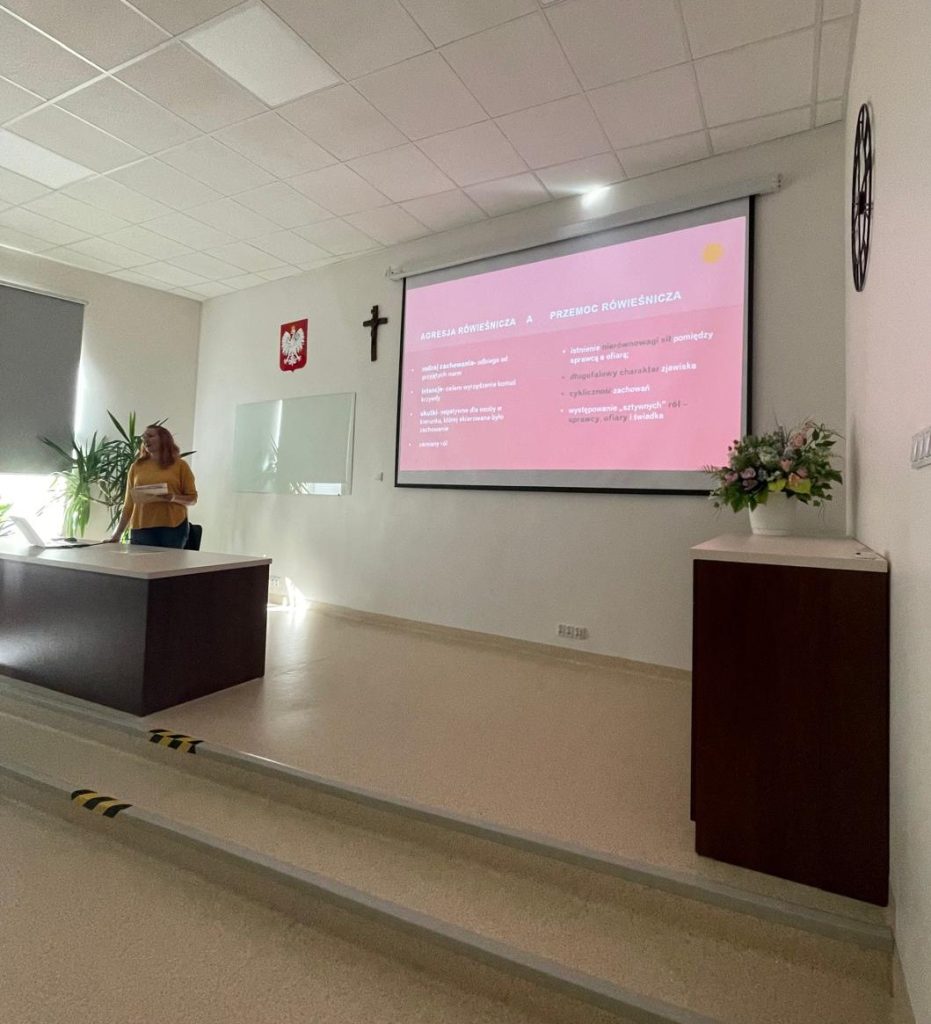 Wspaniałym podsumowaniem tygodnia przeciwdziałania przemocy rówieśniczej, był dzisiejszy wykład dla uczniów naszej szkoły. 6 października 2025 r. odbyło się spotkanie i prelekcja dla młodzieży w ramach programu profilaktycznego przeciwdziałania przemocy rówieśniczej „Mocni w relacji”. Program jest realizowany przez Specjalistyczną Poradnię Profilaktyczno-Terapeutyczną, a z młodzieżą spotkała się Pani psycholog Justyna Nykiel-Nowak. Adresatami byli uczniowie z klas III TD, III TM, IV TM, I TD, I EM, I TR,