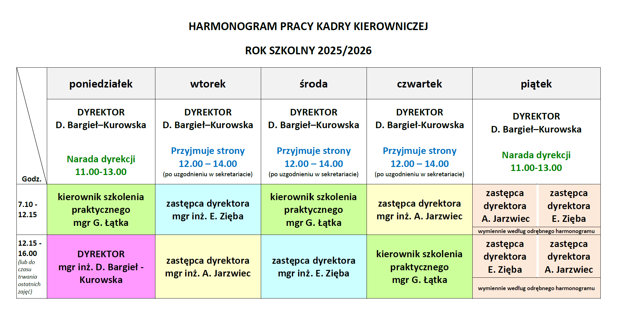 Harmonogram pracy Dyrekcji