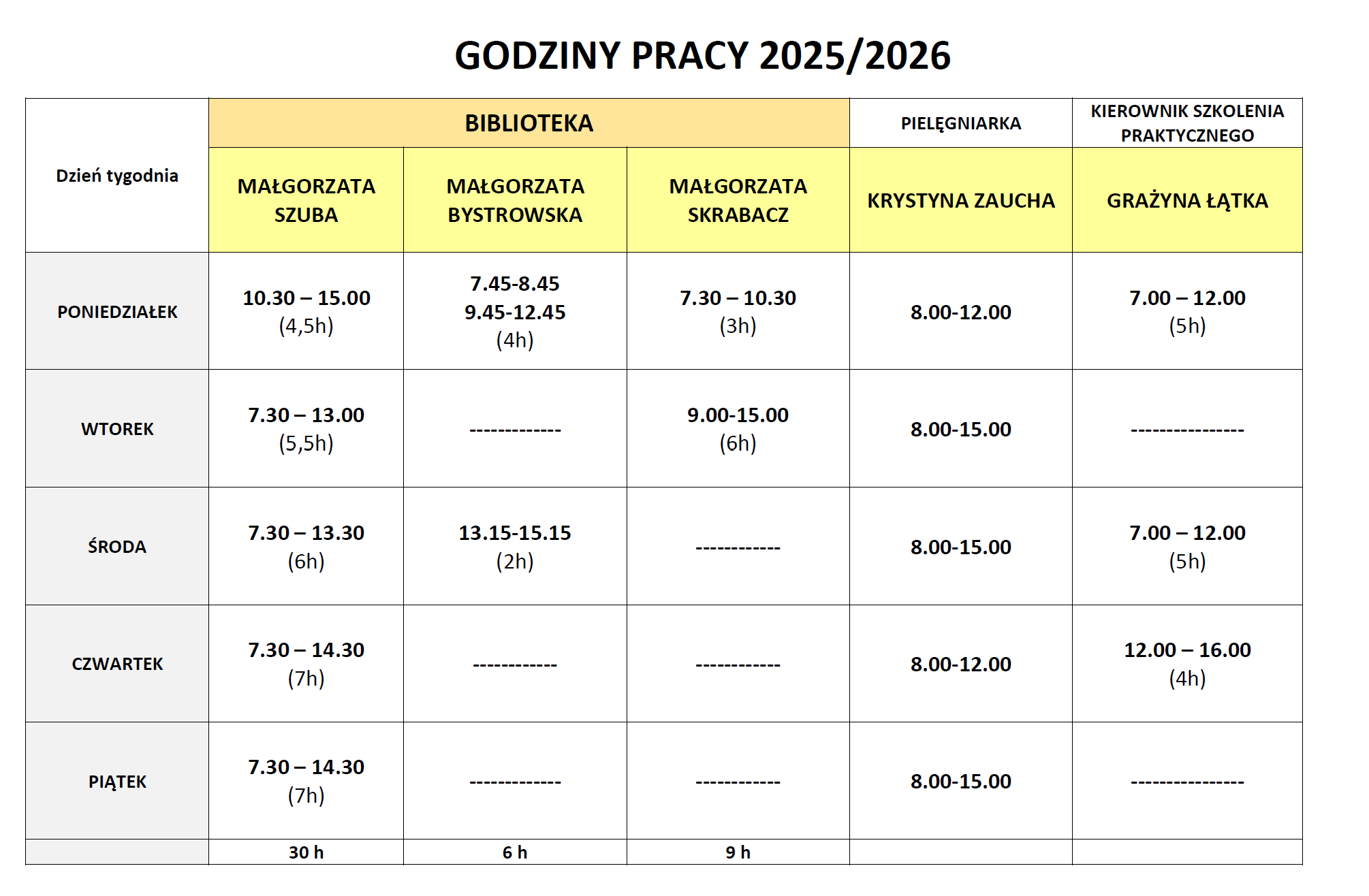 Harmonogram pracy Dyrekcji